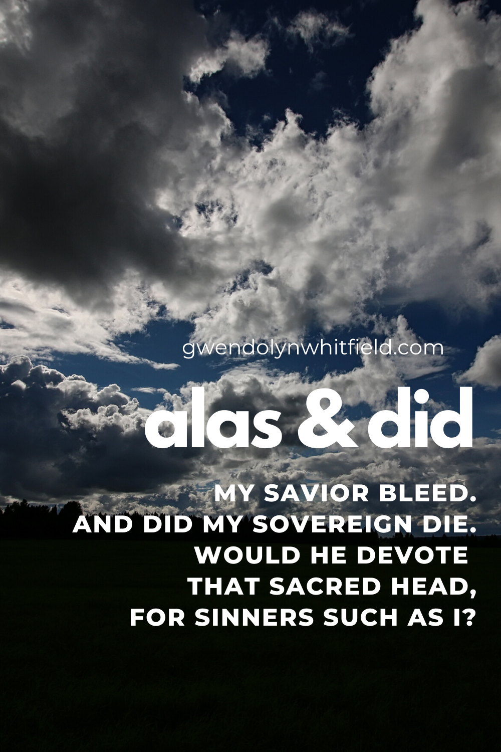 April 10, 2020 Alas! And Did My Savior Bleed Vocalist: Gwendolyn Whitfield Accompanist: DaShay Glover Isaac Watts, 1707 Tune: Martydom This tune may well have originated as an 18th century Scottish Folk Song. Topics: Jesus Christ: Passion and Death « Abide with Me O Sacred Head Now Wounded »